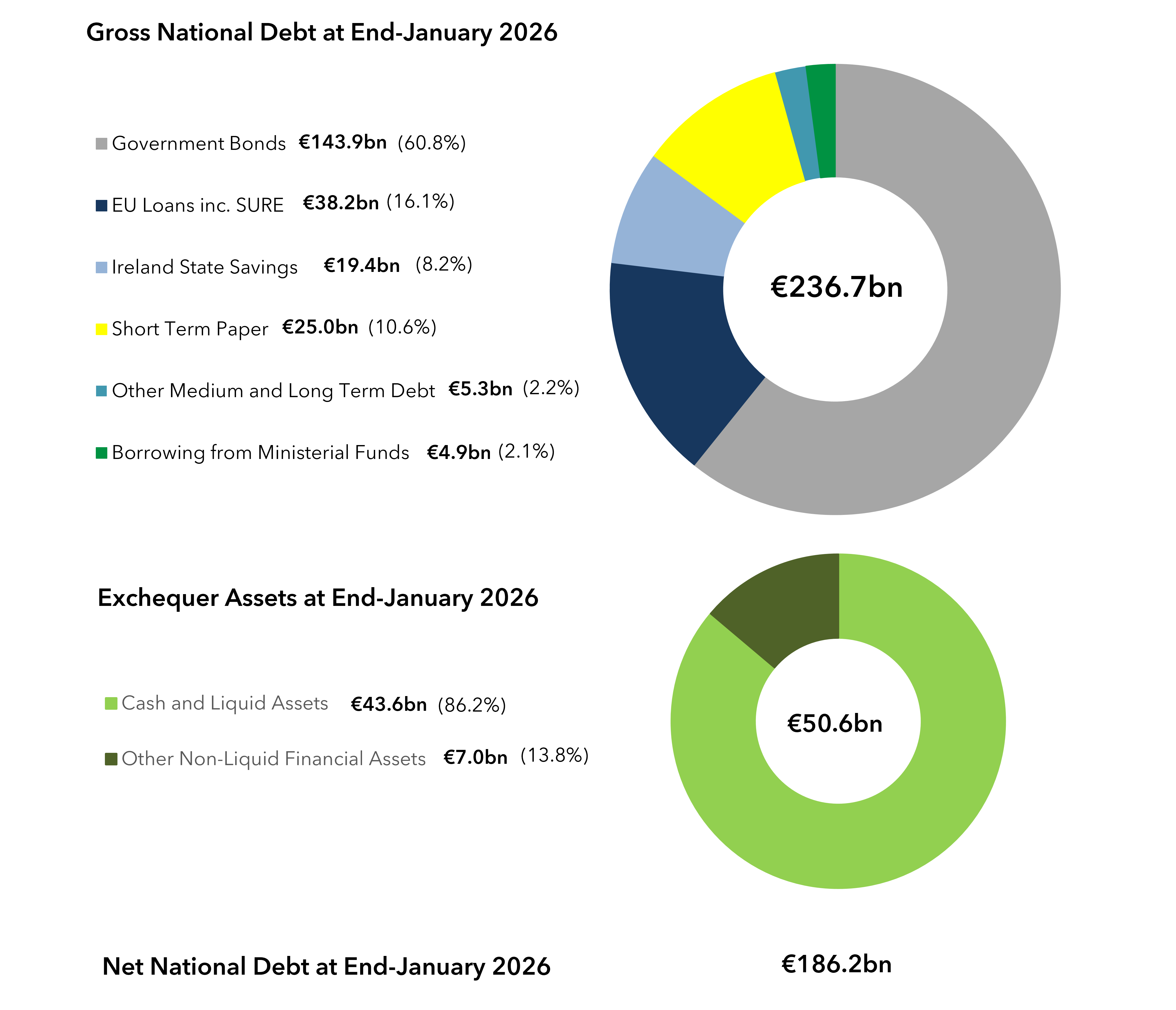 Exchequer cash and liquid asset balances of €43.6bn at end-January 2026 Read More