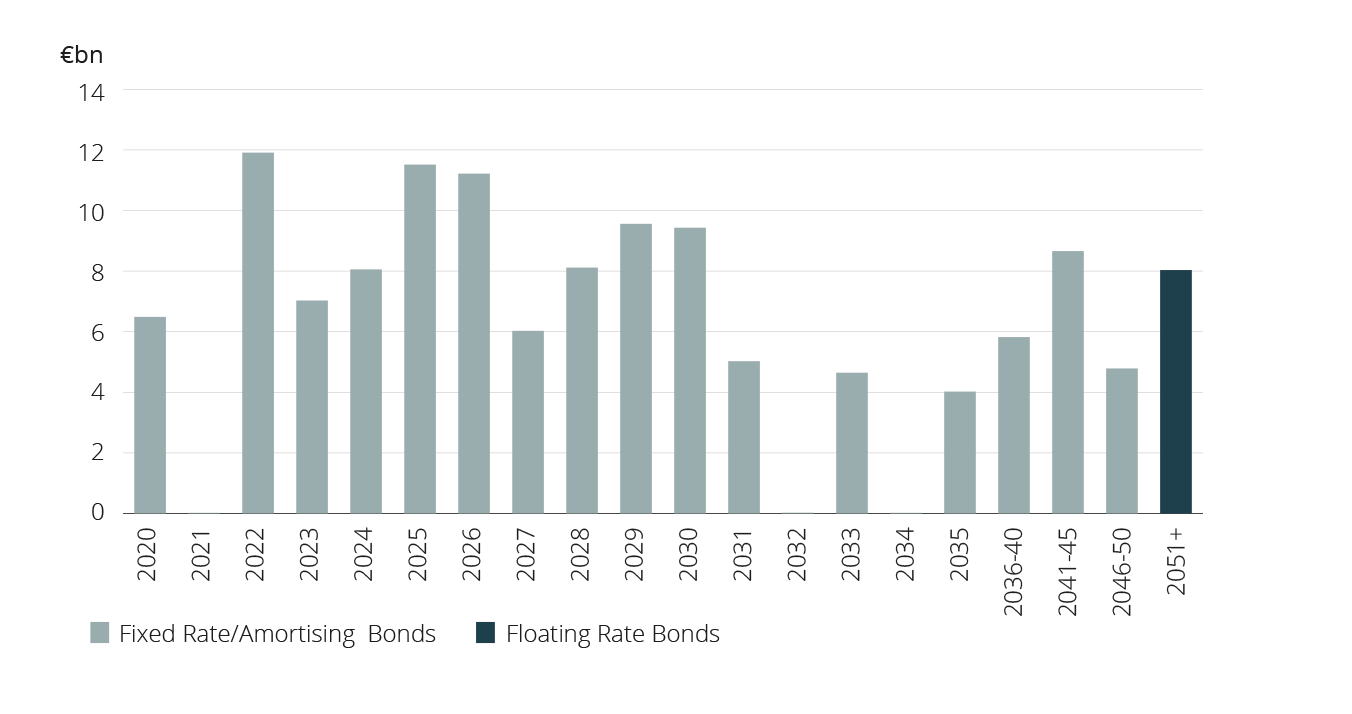 Maturity profile of outstanding Irish Government Bonds at end-May 2020