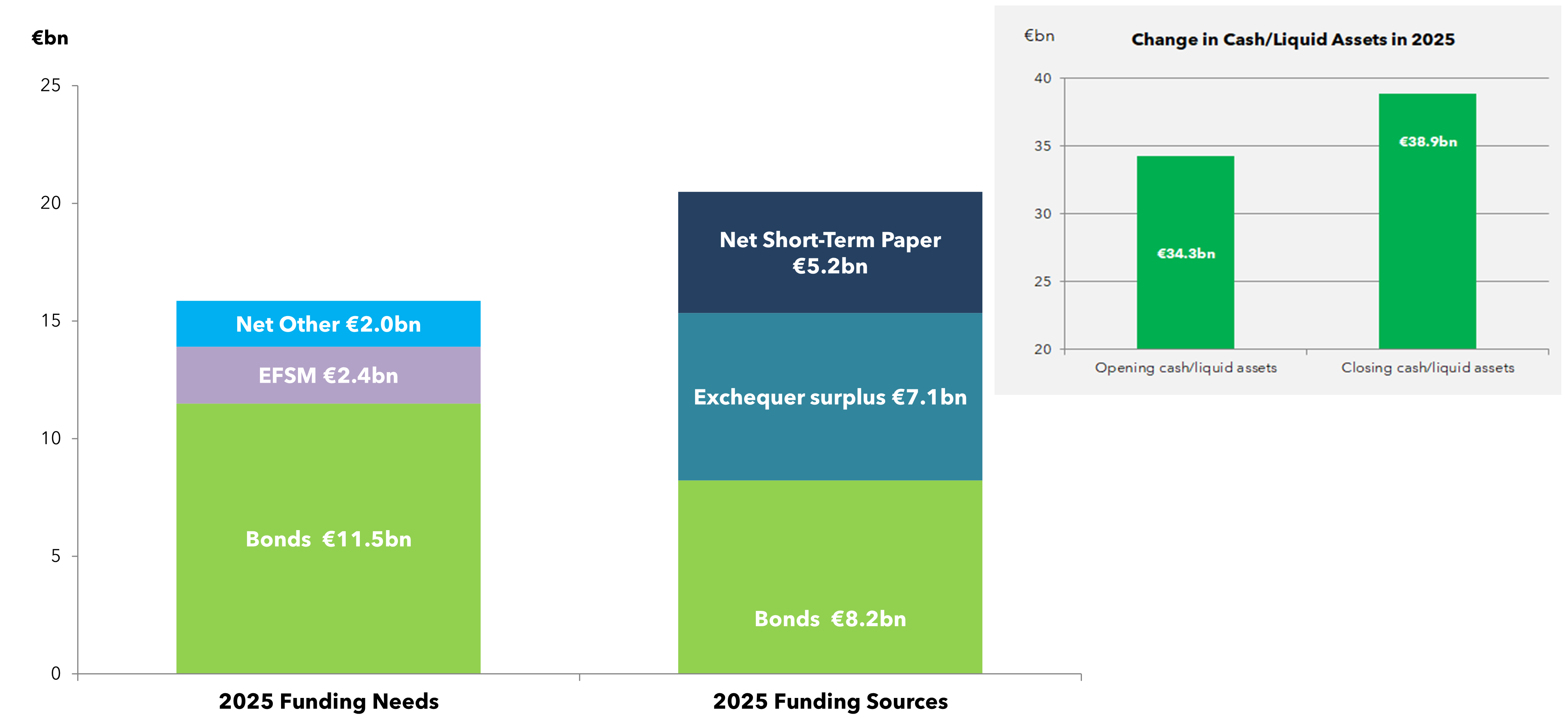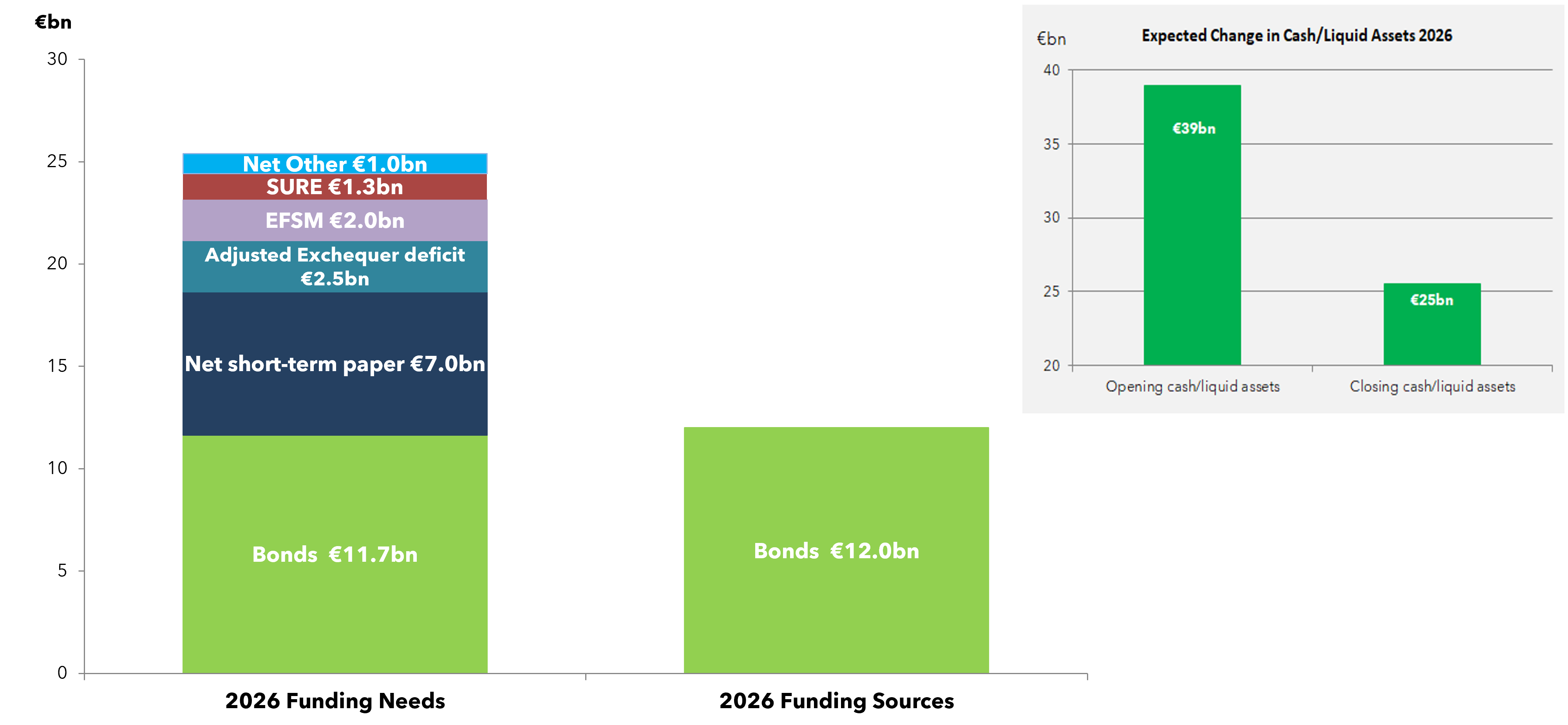 1. €12bn is reflected for bonds as it is the mid-point of the €10bn to €14bn bond funding range for 2026 announced in December 2025.
