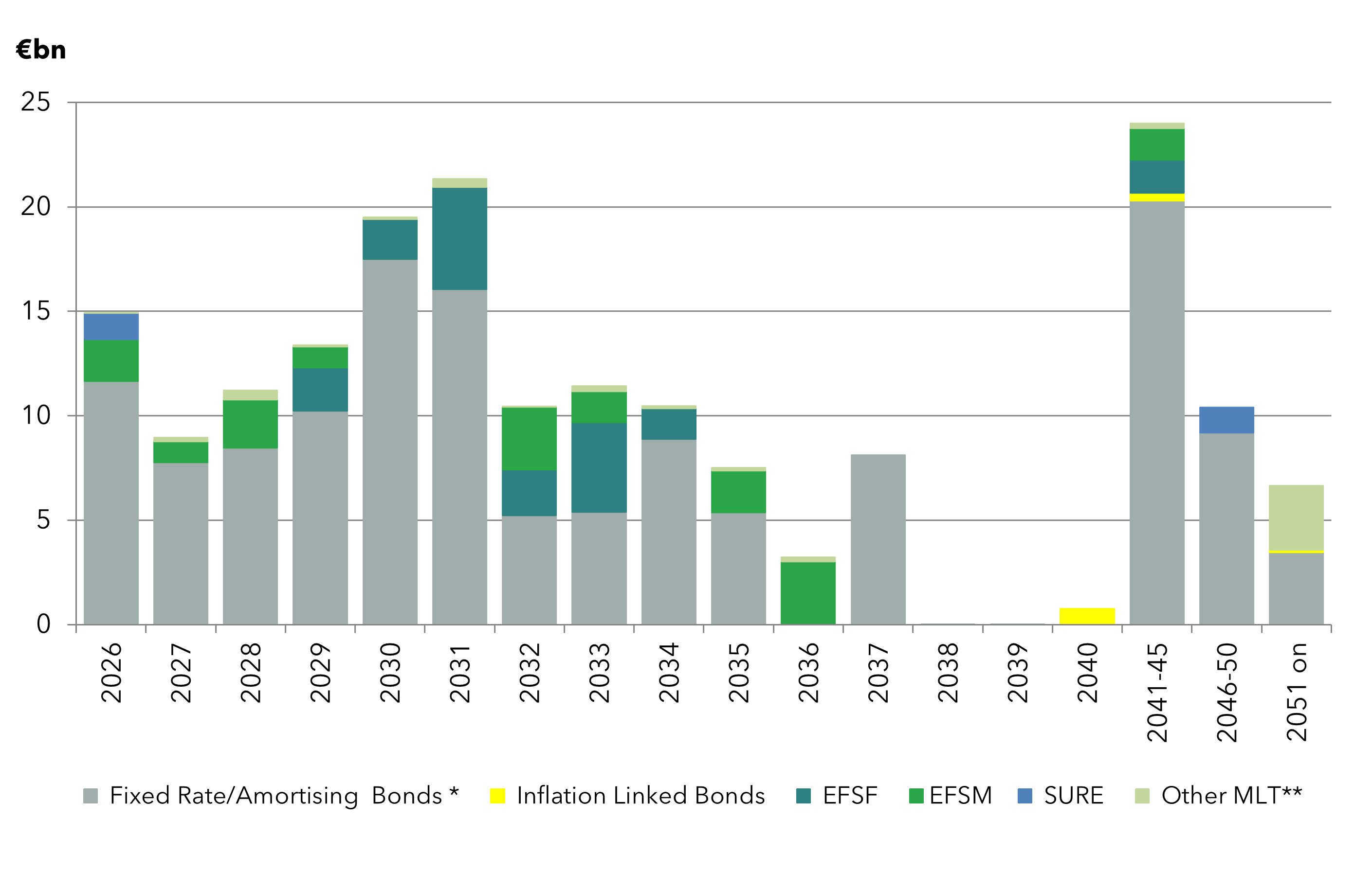 Maturity Profile of Ireland's Medium and Long-Term Debt as at End-December 2025
